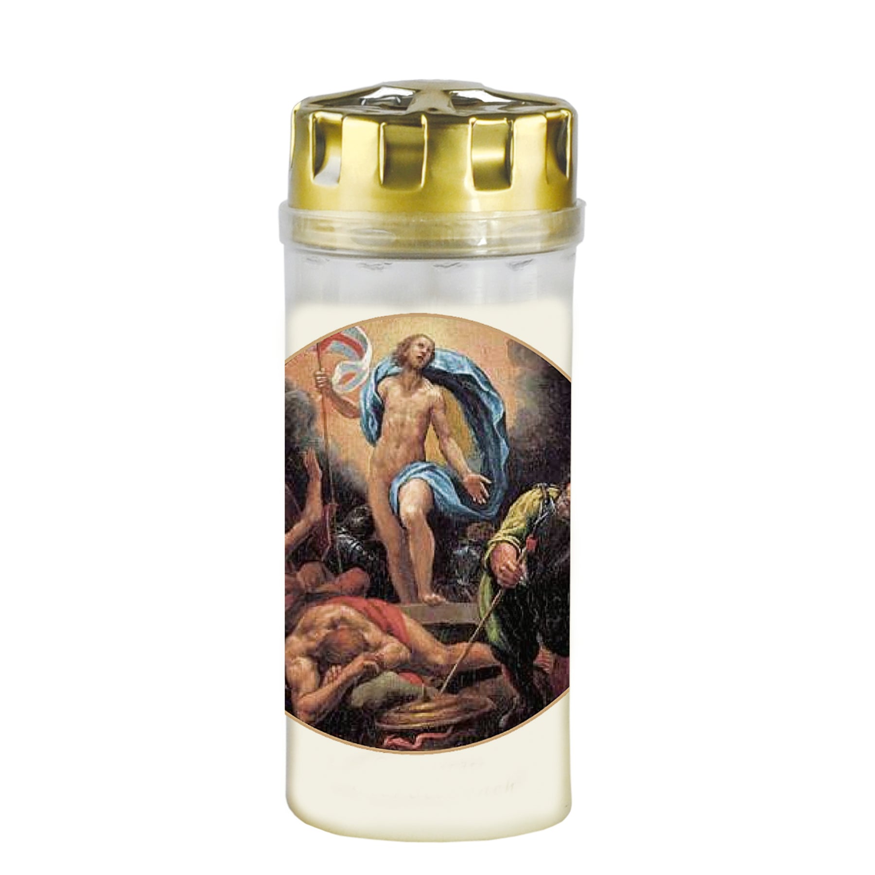 La bougie de résurrection dans un pot en plastique avec une impression tout autour est munie d'une étiquette étanche. Vous pouvez choisir parmi 3 durées de combustion différentes. Sur demande, nous serions également ravis de produire des bougies de résurrection selon vos préférences.